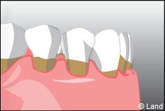 La brosse à dent va toujours de la gencive vers la dent.